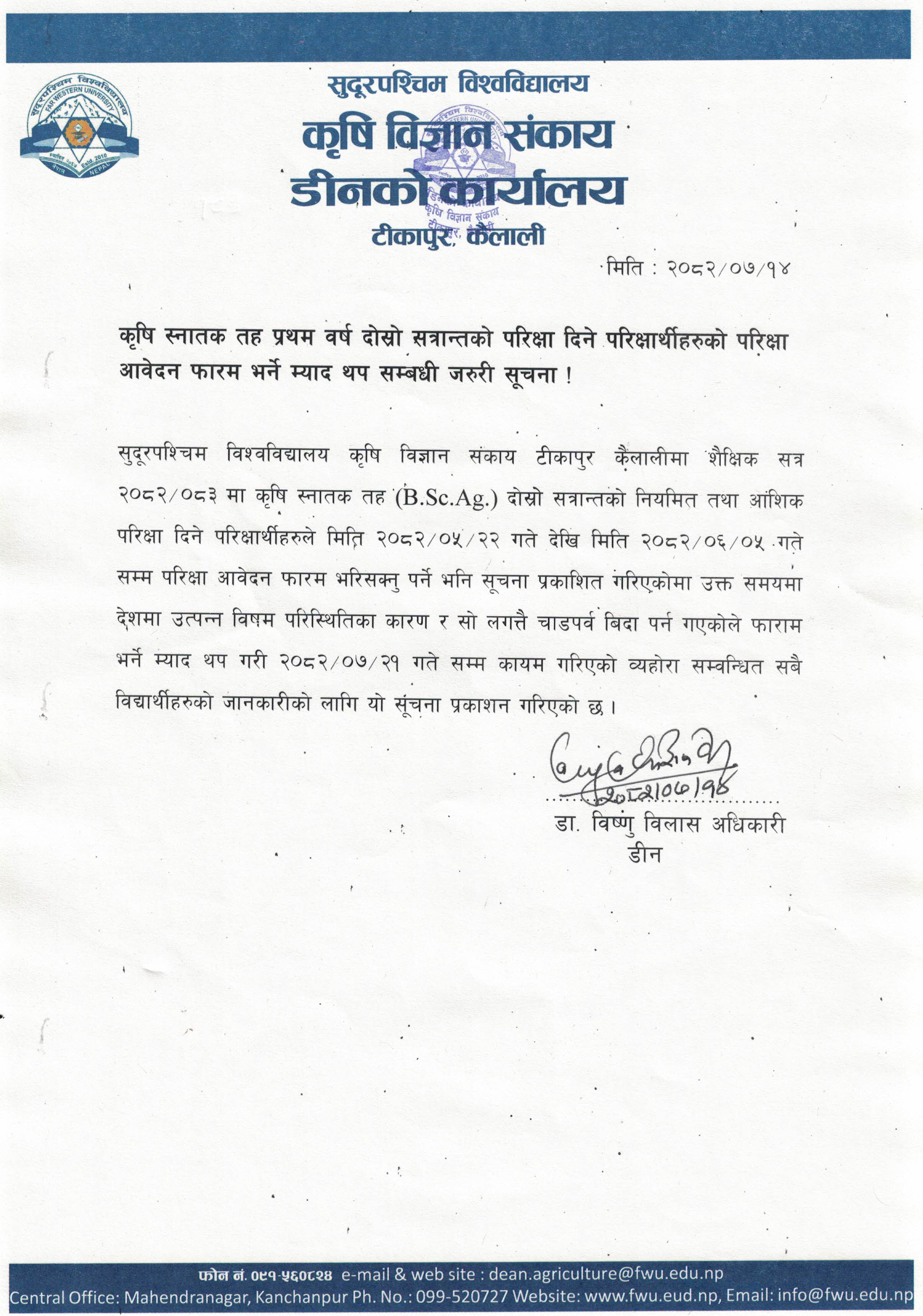 दोश्रो सत्रांतको परिक्ष्या आबेदन फारम भर्ने म्याद थप सम्बन्धि सूचना