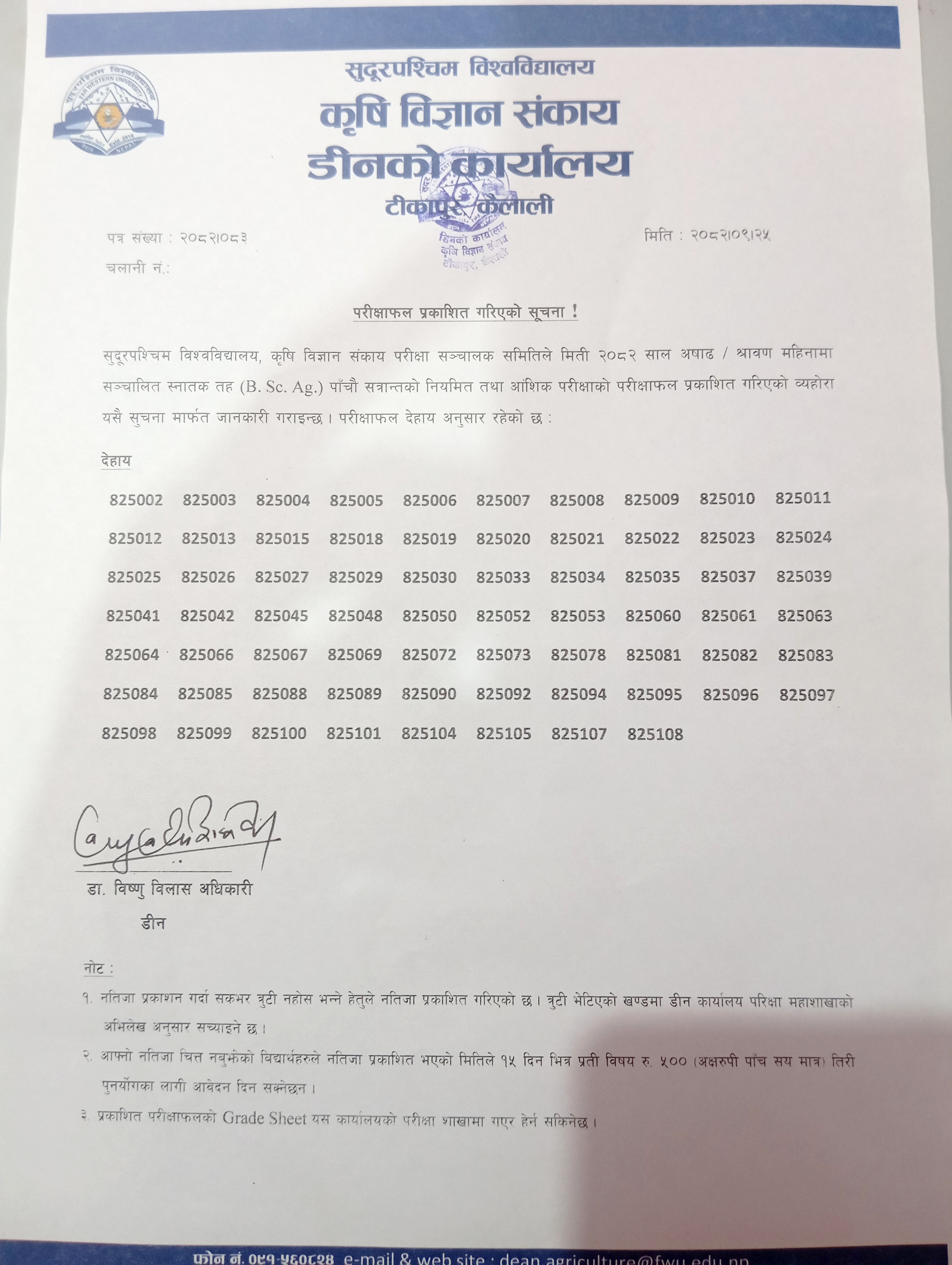 Important notice for B.Sc.Ag 8 semester for proposal defence seminar schedule