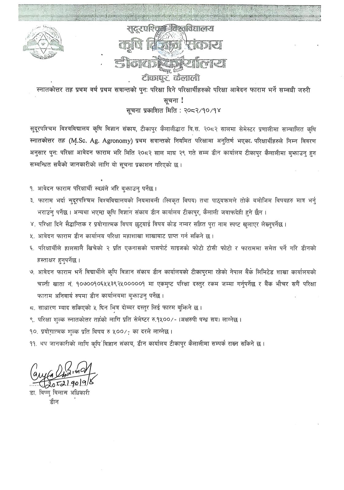 स्नातकोत्तर तह प्रथम वर्ष प्रथम सत्रांतको पुनः परिछ्या दिने परिछयार्थीहरुको परिछ्या आवेदन फाराम भर्ने सम्बन्धि जरुरि सूचना