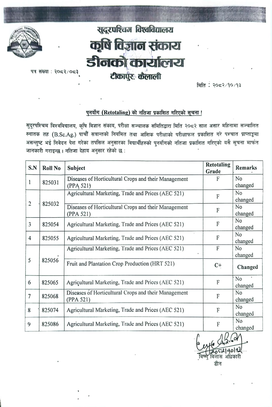 Notice of M.sc.Ag. admission