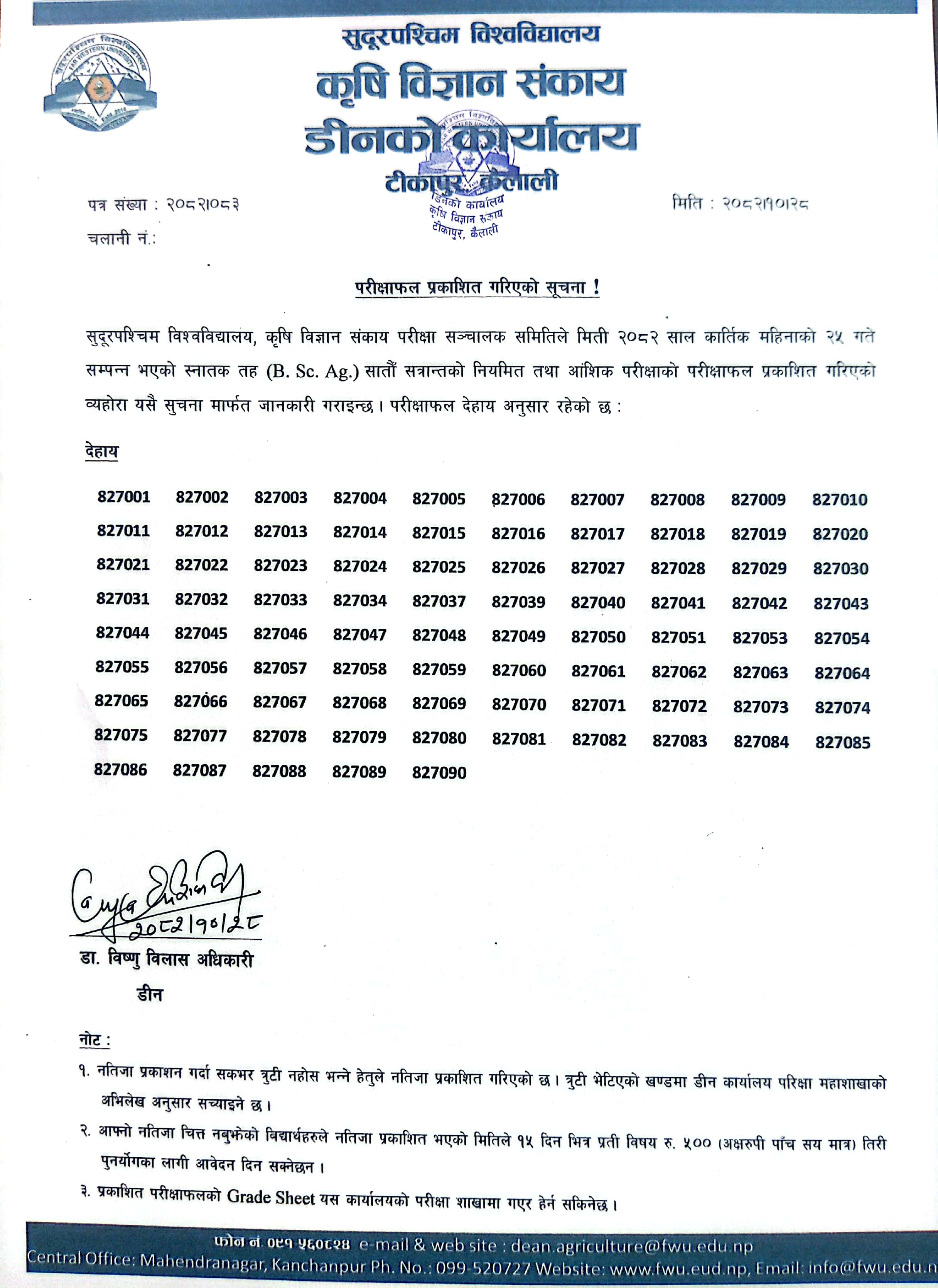 B.Sc.Ag. 7th semester result published .